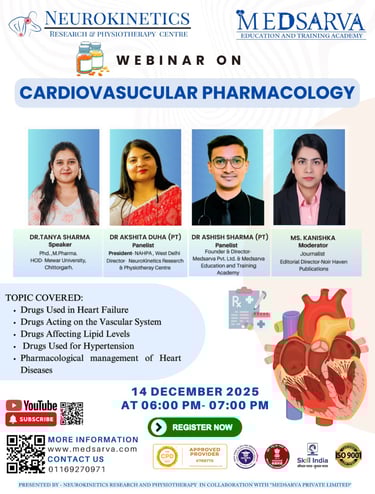 This webinar focuses on the essential pharmacological concepts used in the diagnosis and management of cardiovascular diseases. With the increasing global burden of heart-related disorders, it has become important for healthcare professionals to build a strong foundation in cardiovascular drug therapy.